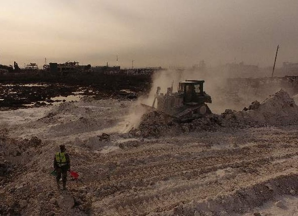 河北宣工高驅(qū)動推土機(jī)在江蘇響水“3·21”特大爆炸事故核心區(qū)爆炸坑搶險(xiǎn)救援活動中再建新功